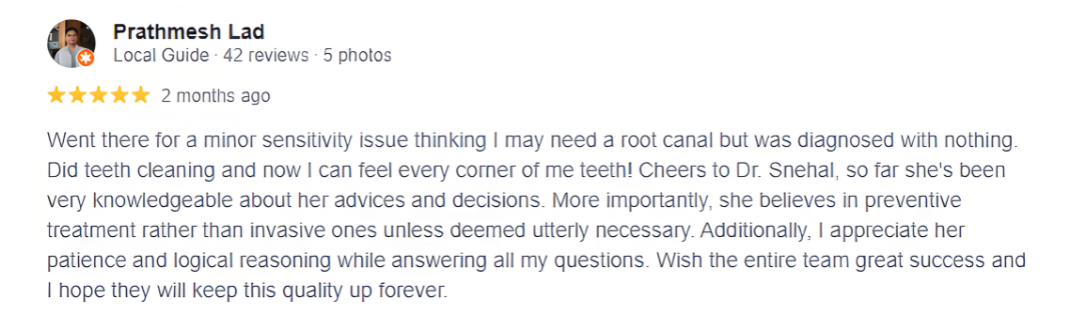 I had a wonderful experience at this clinic. The staff is professional, polite, and very supportive, making the entire process smooth and comfortable. The clinic is clean, well-maintained, and equipped with modern facilities. A special mention to the doctor Snehal extremely knowledgeable, patient, and kind.